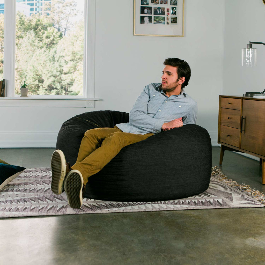 Introducing the ultimate lounging solution: the Jaxx 4' Classic Saxx Big Bean Bag Chair in black denim. Whether you're curling up with a good book or unwinding after a long day, this bean bag chair is the perfect place to relax.